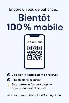Découvrez le nouveau programme fidélité Le Gourmand : carte dématérialisée, QR code, suivi des points, avantages et bonus de lancement. Activation simple et rapide.Le programme fidélité Le Gourmand évolue et devient plus moderne, plus simple et plus transparent. Votre carte PVC est progressivement r